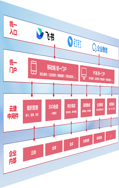 对协作平台提供支持服务,,支持企业应用与协作平台对接,,,,包含组织同步、、消息集成、、、待办集成等。。支持目前主流的协作平台:钉钉、、、、企微和飞书。。
